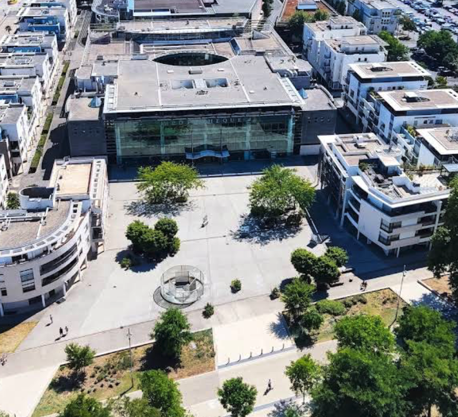 L’entrée au rez-de-chaussée, claire et sécurisée, s’ouvre sur une large rue piétonne avec un accès véhicule contrôlé par un badge nominatif géré par la police municipale.